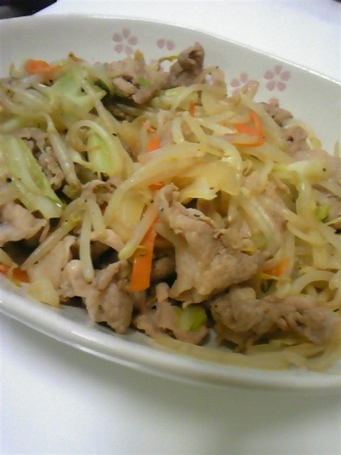 豚肉入れたもやし炒めだけど。